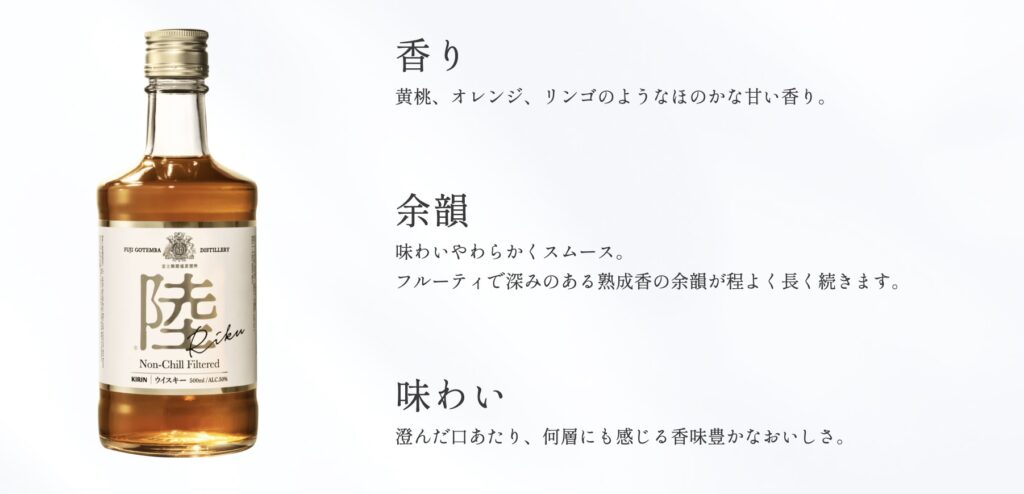 キリンウイスキー「陸」は、かつてキリンが販売していた「富士山麓」の後継として誕生したキリンディスティラリーの主力銘柄です。
